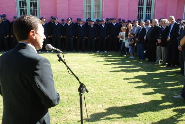 En la ocasión, el jefe comunal hizo entrega de banderas de ceremonia a la Comisaría de la Mujer y a la Academia de Policía Local Bahía Blanca.