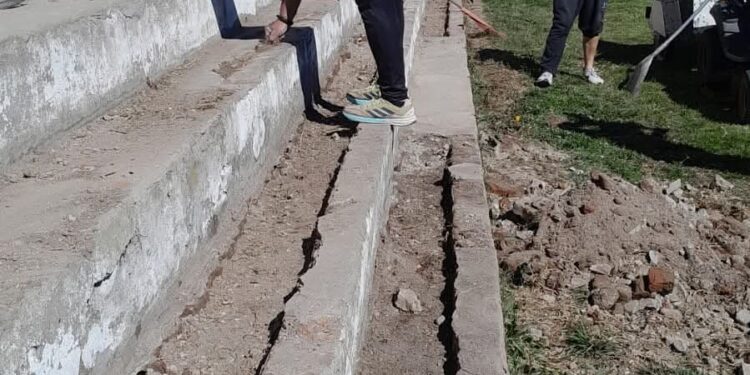 –Se construyó un cordón de encadenado en el contorno de las tribunas del lado local.