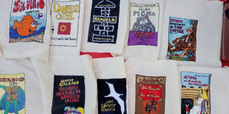 Desde hace meses vecinas de Bahía Blanca e Ing. White están bordando tapas de libros, primero los que se perdieron con la inundación y después las tapas de los más leídos en la historia de la biblio.