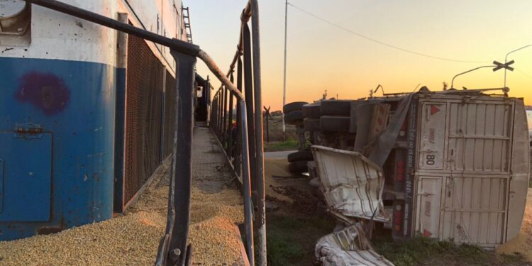 El choque se produjo en la parte trasera del vehículo de carga, lo que provocó que el camión volcara y esparciera su carga sobre la cinta asfáltica. La formación ferroviaria transportaba soda cáustica, aunque afortunadamente no se registraron heridos de consideración.