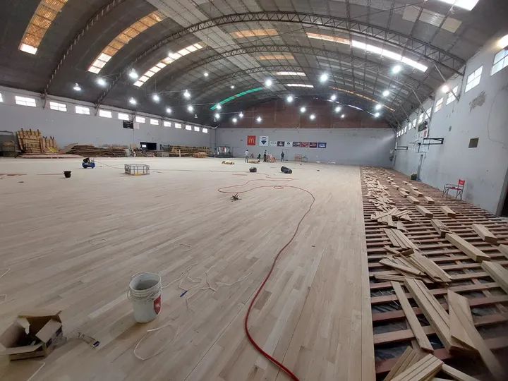 Por estos dÃas se está terminando de colocar la trama mecanizada del piso flotante (parquet) y se comenzarán las tareas de pulido. Luego se pintará y por último se laquea.