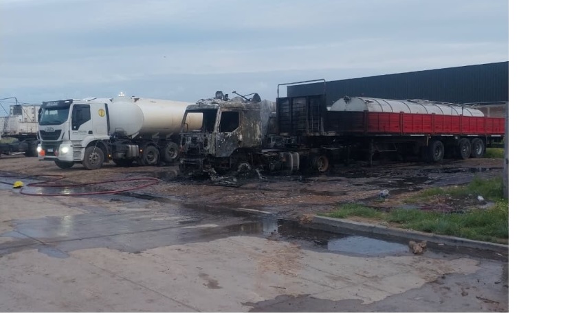 Tres camiones quedaron completamente destruidos por el fuego en la madrugada de este lunes en cercanías del Parque Industrial, más precisamente en Alberto Gerchunoff al 3600.