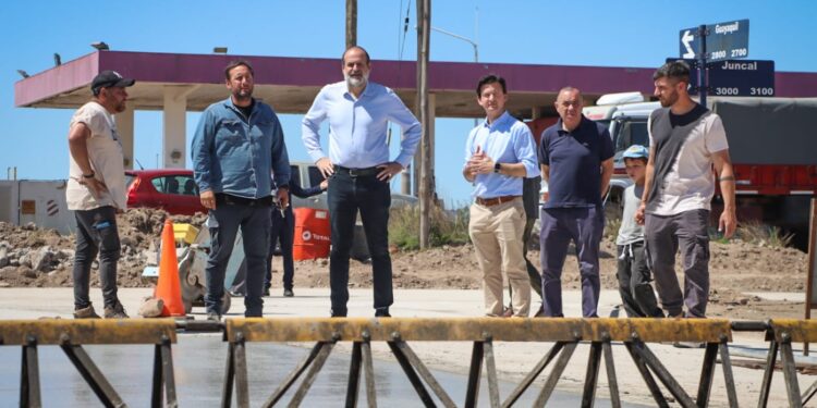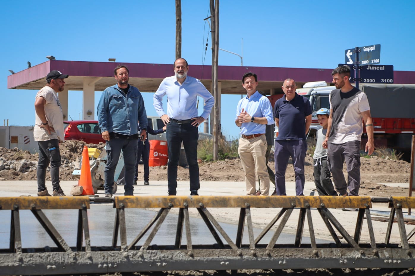 Junto a Santiago Mandolesi Burgos y el delegado Juan Pablo CƩsari, supervisamos las tareas de hormigonado en la calle Guayaquil, entre Juncal y Esmeralda.