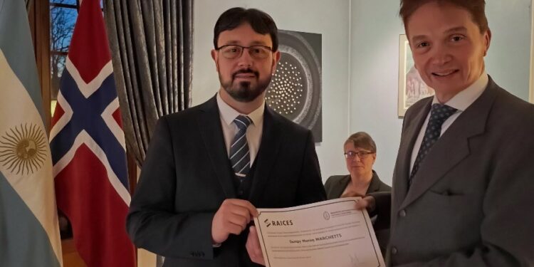 “Ha sido un gran orgullo personal recibir esta distinción, que reconoce años de colaboración con universidades en Argentina. Quiero agradecer al Embajador Giacomino y a la Embajada de la República Argentina en Noruega por la organización del evento, y también a la UNS y al rector Daniel Vega por haberme postulado para este reconocimiento. Pero sobre todo, agradezco especialmente a Alberto Errazu, a Alfredo Juan y a Graciela Brizuela por haberme abierto las puertas de la ciencia y permitirme descubrir este mundo que marcó mi vida profesional”, agradeció el doctor Marchetti.