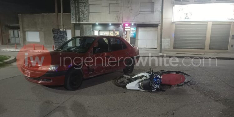 Hace instantes, a las 20.40 hs, se produjo un accidente entre un auto y una moto, en la Av. San Martín y Vélez Sarsfield (mano del lado de la panadería).