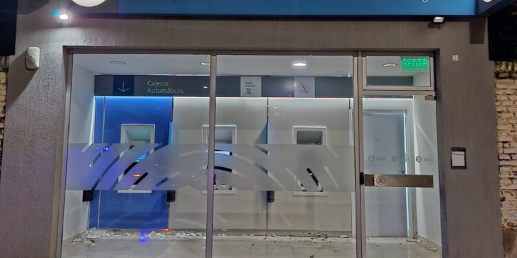 Según se informó, el individuo intentaba violentar el cajero automático del Banco Nación utilizando un trozo de baldosa, causando importantes daños en el interior del recinto.