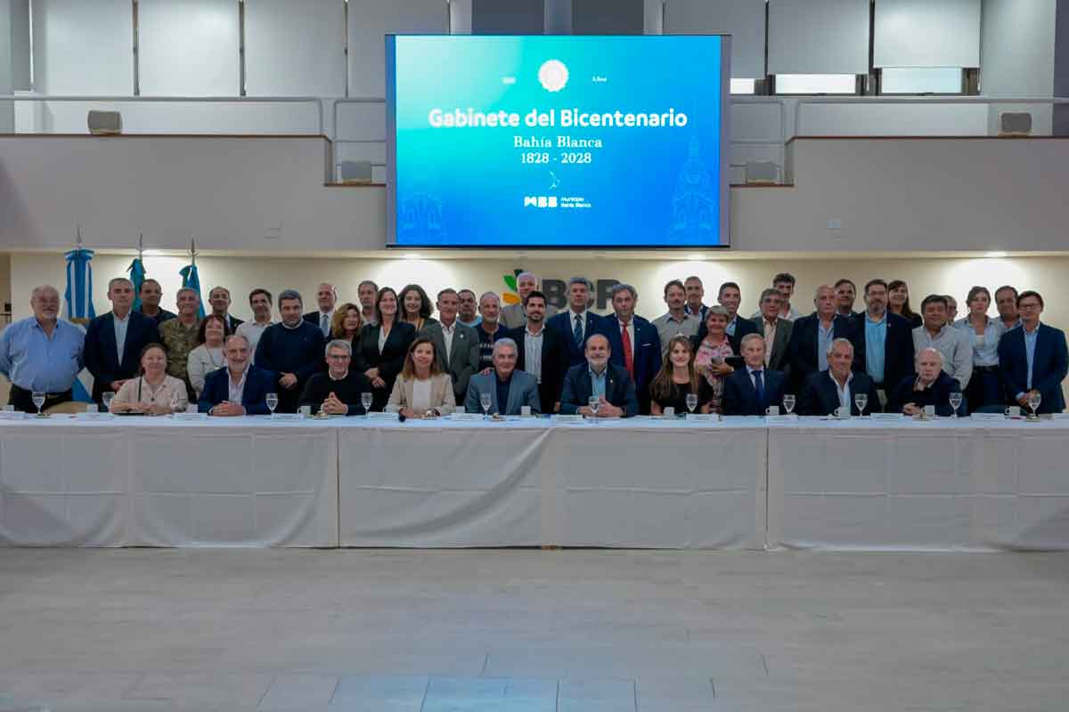 El Gabinete del Bicentenario está compuesto por funcionarios del Municipio, la Presidenta de Honorable Concejo Deliberante, Gisela Caputo, el Presidente del Consorcio de Gestión del Puerto, Santiago Mandolesi Burgos y los legisladores provinciales Marcelo Feliú, Andrés De Leo y Oscar Liberman – este último ausente por cuestiones de agenda que lo requerían en Buenos Aires-, además de dirigentes y representantes de la Unión Industrial, la Corporación del Comercio, la Industria y los servicios y la Cámara de Comercio; autoridades educativas y de la UNS, la UTN y la Universidad Salesiana, Biblioteca Rivadavia, los directores del Hospital Municipal y José Penna, referentes de la iglesia católica, de la comunidad israelita y de la iglesia evangélica; miembros del poder judicial y del Ministerio Público Fiscal, jefes de las Fuerzas de Seguridad y de las Fuerzas Armadas y referentes del ámbito de la cultura.