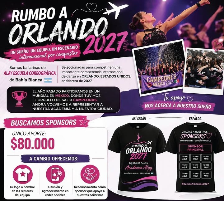 Para poder solventar los costos del viaje, están en búsqueda de sponsors, con un aporte único sugerido de 80 mil pesos (espacios limitados y alta visibilidad local y digital).