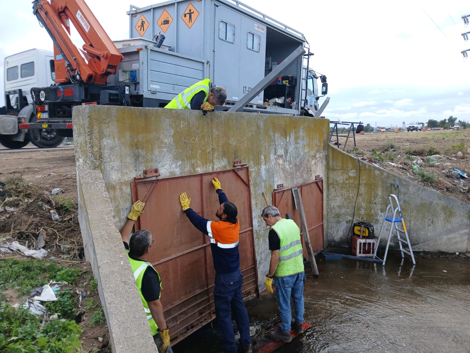 Luego de varias gestiones y reuniones, siendo uno de los pedidos expuestos oportunamente por los vecinos de nuestra localidad, se llevó a cabo la reparación de las compuertas en la zona de Boulevard y Saladero.